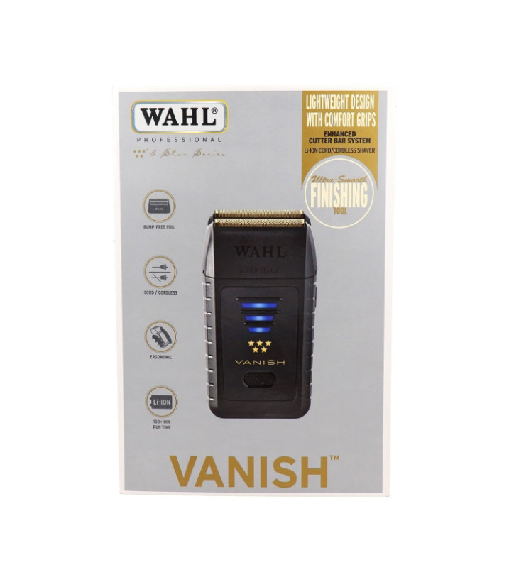 شیور ریش تراش فویلی (ماشین اصلاح صورت) وال ونیش حرفه ای Wahl 8173-700 Professional 5 Star Vanish Shaver یک سیستم تعلیق نوآورانه به میله های شیور اجازه می دهد تا به طور مستقل حرکت کنند و تمام خطوط گردن و صورت را در آغوش بگیرند تا آخرین موهای زائد ناپدید شوند.