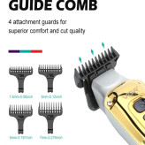 مناسب اصلاح موی سر و صورت – طراحی ارگونومیک – قابل استفاده به صورت بی سیم و باسیم – اندازه اصلاح 0.2 میلی متر – دارای 4 شانه قابل تنظیم 1، 3، 5 و 7 میلی متر – قابلیت تنظیم سرعت در 4 مرحله – شارژ سریع 5 دقیقه ای – نمایشگر LED وضعیت باتری – روغن – برس تمیز کننده – سرعت موتور 7000 دور بر دقیقه – باتری لیتیوم یون 1600 میلی آمپر ساعت |