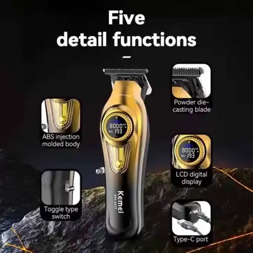 ماشین اصلاح خط زن کیمی Kemei KM-1677 برند : کیمی مدل : KM-1677 جنس تیغهها: DLC Blade عنوان : حجم زن ، فید زن و سایه زن قابلیت اصلاح بصورت صفر : 0 قابلیت اصلاح ریش و بدن : دارد قابلیت اصلاح موی سر و گردن : دارد منبع تغذیه : باتری قابل شارژ دور موتور توربو مدت زمان مورد نیاز برای شارژ شدن : 3 ساعت مدت زمان کار بعد از شارژ : 240 دقیقه باتری 2000 دور موتور 8000 نمایشگر : دارد نوع طراحی : ارگونومیک سایر ویژگی های محصول انتخابی رنگ بر اساس موجودی بدنه پلاستیک مقاوم طراحی خوش دست مناسب برای سالن و استفاده شخصی دارای شانه اصلاح سایز های متفاوت دارای کابل شارژ دارای راهنما کاربر دارای برس و روغن نکته : قبل از استفاده از ماشین اصلاح حتی اگر باتری آن 100 یاشد به شارژ بزنید به مدت اشاره شده در مشخصات از ماشین اصلاح های ضد آب در زیر دوش و شستشوی آن خودکاری کنید فقط تیغه آن قابلیت شستشو دارند از کله شارژ های استاندارد استفاده کنید ماشین اصلاح خط زن کیمی Kemei KM-1677